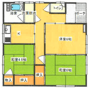 キッチン×1 和室6帖×1・4.5帖×1 洋室6帖×1 - 建物面積