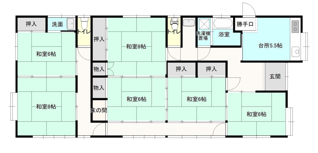 6DKの広めの平屋。トイレが2つあるのも便利そう!