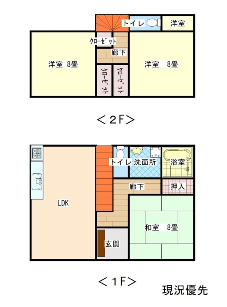 リビングダイニングキッチン、和室8帖、洋室8帖×2 - 建物面積
