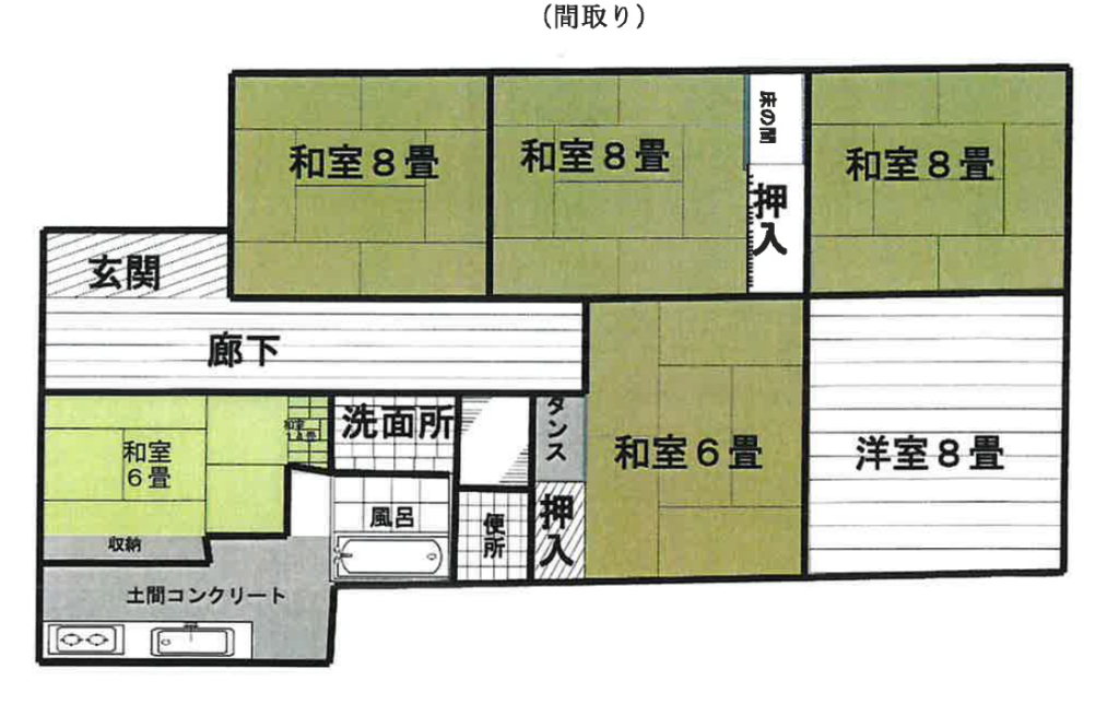台所、和室6帖×2・8帖×3、洋室×8 - 建物面積