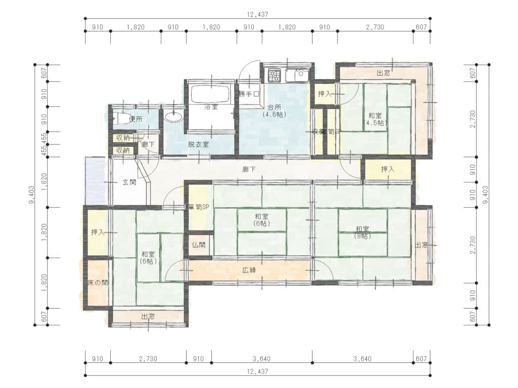 キッチン×4.6帖、和室4.5帖・6帖×2・8帖 - 建物面積