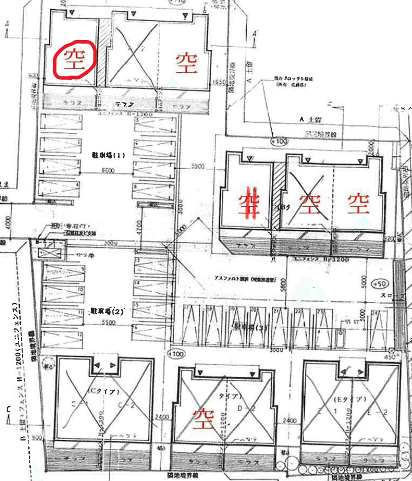 長屋タイプの集合住宅。お庭付で駐車場2台が嬉しい! 修繕なしですぐに入居可です。