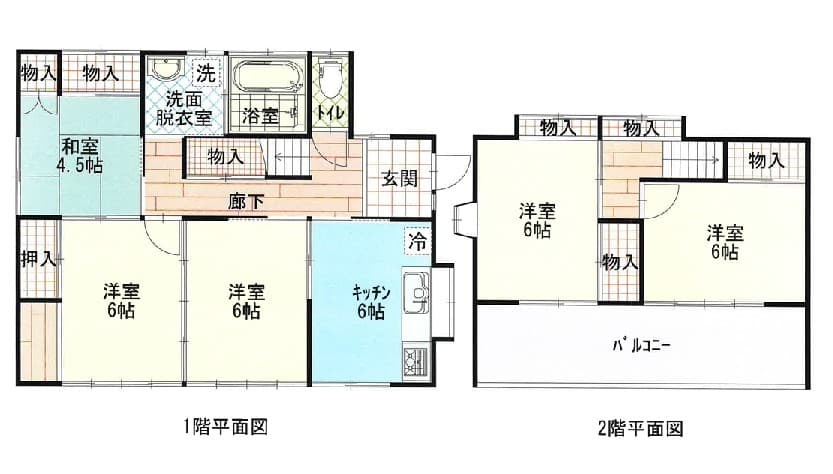 洋室6帖×4、和室4.5帖 - 建物面積