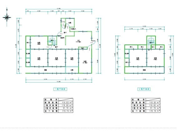 - 170.58㎡ (1F: 118.83㎡、 2F: 51.75㎡)