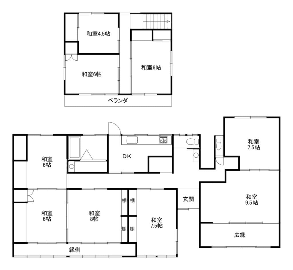 DK 和室7.5帖×1、9帖×1、8帖×1、7.5帖×1、4.5帖×1、6帖×4 - 建物面積